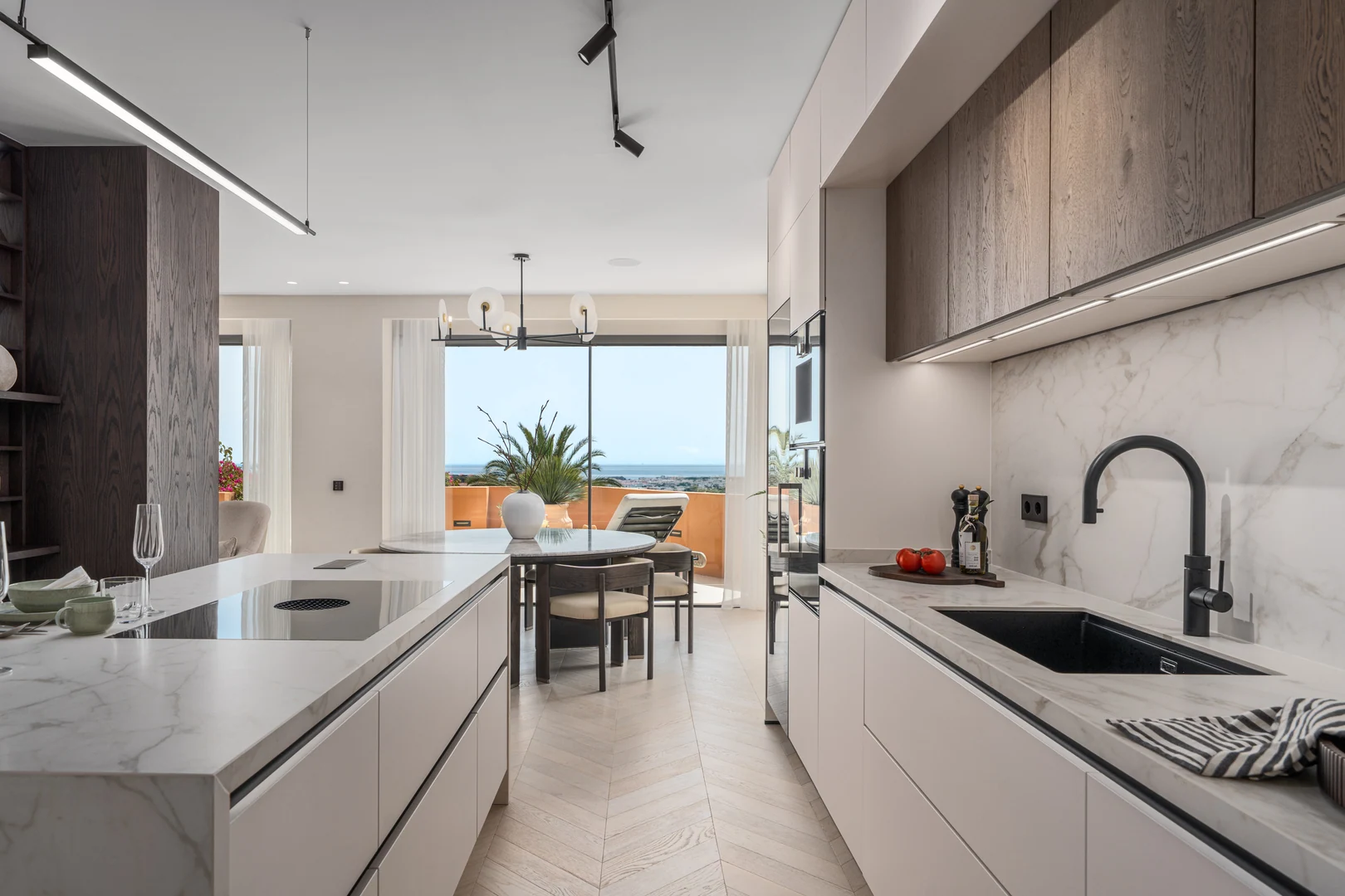 Perched in the heart of Nueva Andalucía, this sophisticated 4-bedroom, 5-bathroom apartment offers panoramic sea views, and the elegant lifestyle of Marbella living. Spanning 210 sqm of living area on a 310 sqm total build, the home blends bright, airy interiors with generous outdoor terraces — a rare find that feels like a private retreat above the Mediterranean.